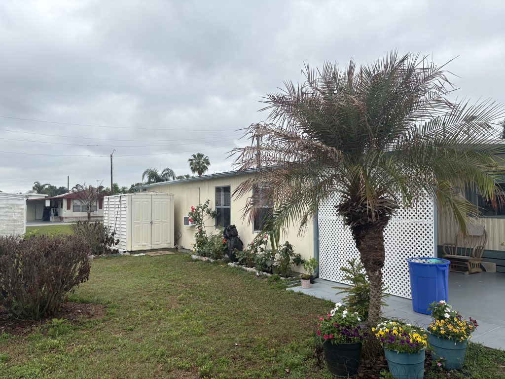 The lot rent includes water, sewer, mowing, fire tax, and use of park amenities and is $575/month. Home address is 1010 Ohio Street, Fort Meade, FL 33841.