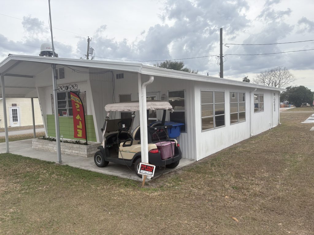 The lot rent includes water, sewer, mowing, fire tax, and use of park amenities and is $575/month. The home address is 1016 Illinois St., Fort Meade, FL 33841.