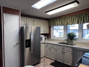 You are here: Sun Resales > 2 bedroom 2 bath, 55+ Community, Active 55+ Community, Active Adult Community, Doublewide, Gated Community, Great Central Florida location, Homes of Merit doublewide, Manufactured home, Mobile home, Offered Furnished, Swiss Golf & Tennis, Upscale Resort Community > Furnished 2BR Home with Florida Room in 55+ Golf Community > 10 Kitchen